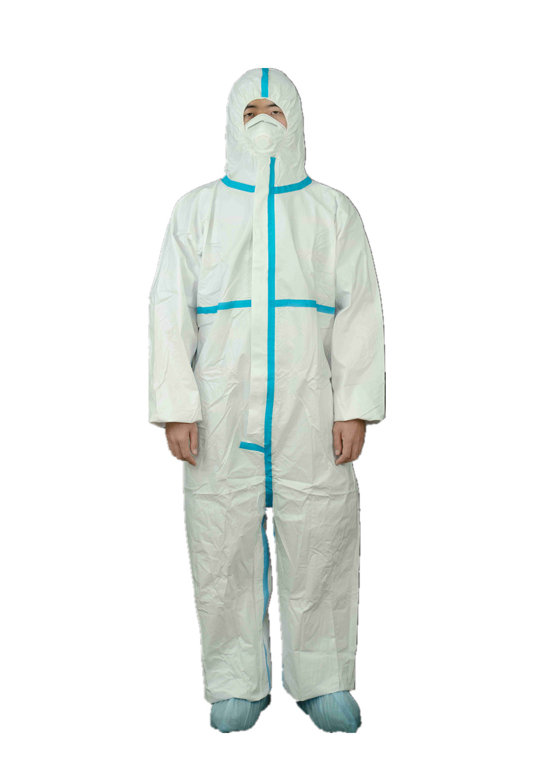 Fabricado a partir de filme microporous laminado ((65 gsm), com costuras de azul costuradas e depois sobre-gravadas.algemas e tornozelos.